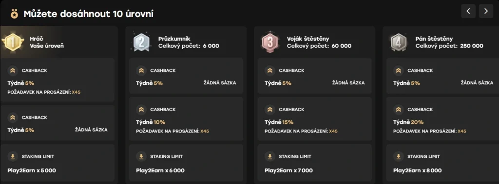 VIP program Fairspin odměňuje loajalitu hráče. Jak postupujete na VIP úrovně, můžete obdržet rostoucí počet týdenních točení zdarma Fairspin, může to být až 100 za týden pro nejvyšší úrovně.